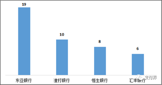3.东亚银行、汇丰银行、花旗银行的信用卡业务投诉量位列外资法人银行前三名。外资法人银行信用卡业务投诉量的中位数为30件。其中,信用卡业务投诉量较多的为:东亚银行212件,环比增长26.2%,占东亚银行投诉总量的88.0%;汇丰银行76件,环比增长4.1%,占汇丰银行投诉总量的75.2%;花旗银行30件,环比增长11.1%,占花旗银行投诉总量的85.7%;渣打银行24件,环比增长71.4%,占渣打银行投诉总量的55.8%。