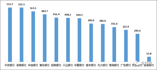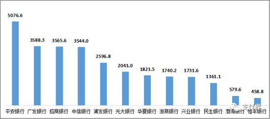 2.平安银行、广发银行、招商银行的平均每千营业网点投诉量位列股份制商业银行前三名。2020年第三季度,股份制商业银行的平均每千营业网点投诉量的中位数为1931.3件/千营业网点。其中,平安银行5076.6件/千营业网点,广发银行3588.3件/千营业网点,招商银行3565.6件/千营业网点,中信银行3544.0件/千营业网点,浦发银行2596.8件/千营业网点,光大银行2041.0件/千营业网点,华夏银行1821.5件/千营业网点,浙商银行1740.2件/千营业网点,兴业银行1731.6件/千营业网点,民生银行1361.1件/千营业网点,渤海银行579.6件/千营业网点,恒丰银行458.8件/千营业网点。