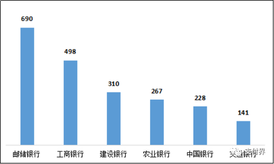 1.邮储银行、工商银行、建设银行的理财类业务投诉量位列国有大型商业银行前三名。国有大型商业银行理财类业务投诉量的中位数为288.5件。其中,邮储银行690件,环比增长17.3%,占邮储银行投诉总量的22.8%;工商银行498件,环比减少42.6%,占工商银行投诉总量的8.5%;建设银行310件,环比减少10.7%,占建设银行投诉总量的5.6%;农业银行267件,环比增长1.9%,占农业银行投诉总量的6.6%;中国银行228件,环比减少96.6%,占中国银行投诉总量的5.2%;交通银行141件,环比增长11.0%,占交通银行投诉总量的3.2%。