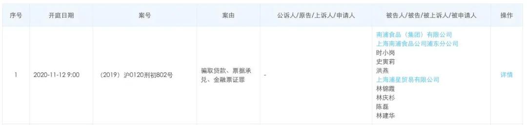 天眼查信息显示,该案件案号为(2019)沪0120刑初802号,案由为骗取贷款、票据承兑、金融票证罪,目前已经过多轮开庭,最近一次开庭时间是2020年11月12日,但还未宣判最终结果。