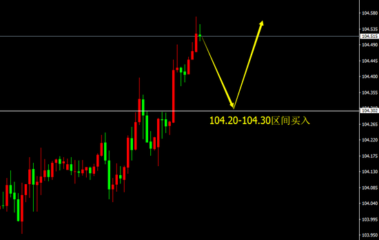 104.20-104.30区间买入,止损20点,目标104.50、104.70、104.90。