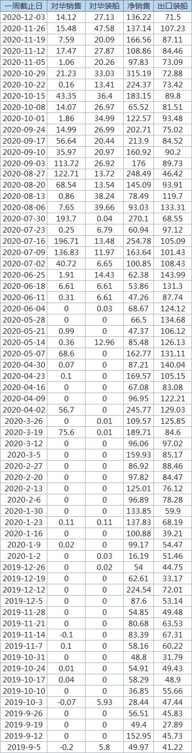 以下为2019/20年度以来美国玉米对中国出口销售情况:(单位:万吨)