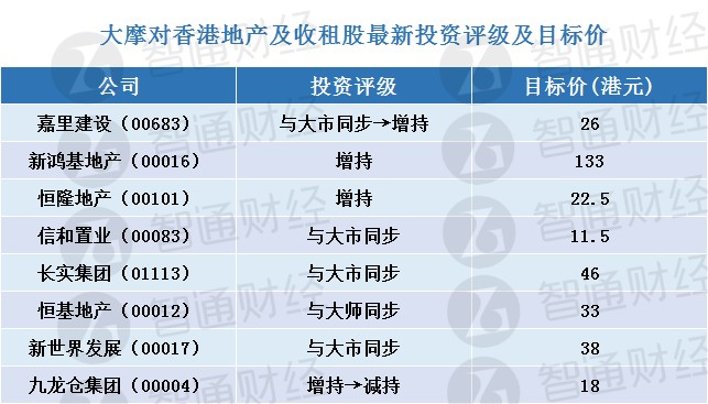 该行调整香港地产及收租股评级及目标价,其中嘉里建设(00683)评级由“与大市同步”升至“增持”,九仓(00004)则由“增持”降至“减持”。