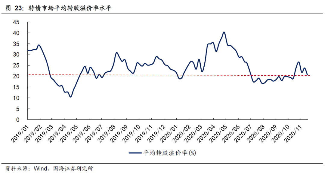 对于转债而言,市场表现取决于正股走势和转债市场估值变化。就估值而言,在经历了前期炒作后,当前转债市场的平均转股溢价率维持在20%左右,处于2019年以来相对较低的历史水平。后续,在不考虑黑天鹅事情冲击的情况下,转债市场估值进一步压缩的可能性较低,市场表现仍然主要取决于正股走势。