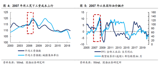 (2)2007.7-2008.8:原油价格+工资成本上涨推动。一方面,在国内,2007年开始以珠江三角洲和江苏苏北为代表地区出现了招工难、用工难的现象,推动了工资上涨。