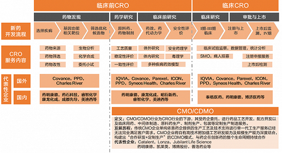 随着外包服务需求增加,产业链延伸到CMO/CDMO(合同生产组织)、CSO(合同销售组织),这些外包服务务贯穿整个药品生命周期。其中,CMO/CDMO即药明康德的第二部分收入来源。