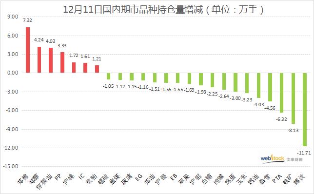 文华财经(编辑 赵清威)--周五国内商品期货走势可谓是波澜壮阔,期市成交量突破4千万手,创历史新高。近期明星品种铁矿石早盘涨幅超过8%,最高升至1042点,动力煤期货大面积涨停,热卷刷新上市来新高,沪镍短暂封涨停板。但10时许,多数商品期货惊现跳水式下跌行情,部分品种由红转绿。有色金属板块中,沪镍仍增仓涨近5%。黑色系中,铁矿石主力回落至千元下方,焦煤重挫近6%,郑煤更是小幅收跌。能化板块表现偏强,近期煤和天然气价格上调给甲醇价格带来强劲的成本支撑,涨幅近6%,录得一年半高位,LU亦收涨近3%。马棕供给端偏紧,棕榈油暴涨近4%,并突破7000点,豆油跟涨超2%,红枣及鸡蛋延续较大振幅。全面跟踪国内商品走势的文华商品指数上涨0.47%,报162.58点。