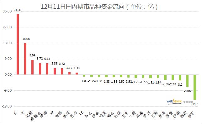 资金流向方面,商品期货共计8.5亿资金流出,昨日近17亿元增持的黑链今日遭26.21亿资金抛弃。饲料板块及贵金属则流出逾3亿元。7亿资金流入软商品,化工及油脂板块均获逾6亿加持。单个品种方面,铁矿无疑为资金流出最多的品种是,较昨日减少14.2亿元,另有6.86亿元自螺纹离场,巨量资金加码期指,但棉花资金流入8.54亿元。