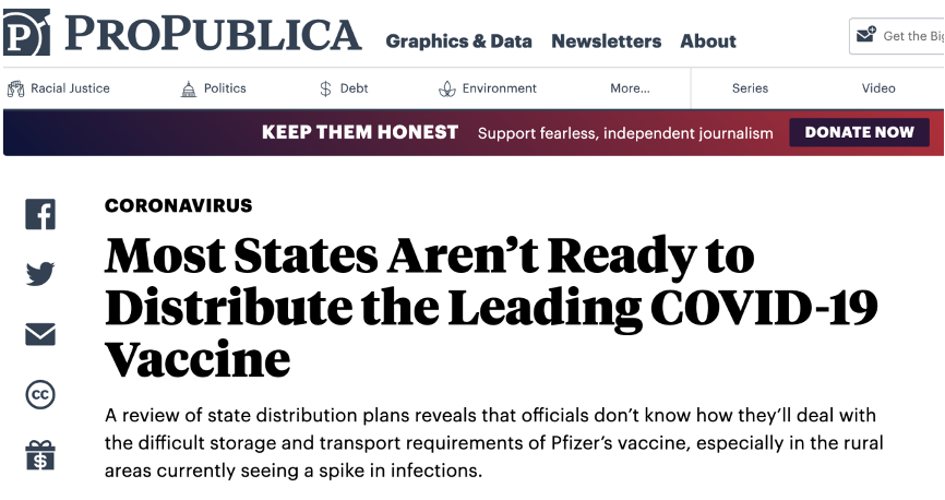 △ProPublica:大多数州还没有准备好分发新冠疫苗