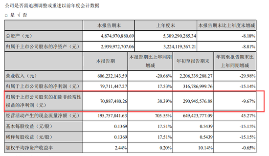 葵花药业三季报显示,公司前三季度实现营收22.06亿元,同比下滑29.98%;实现归母净利润3.17亿元,同比下滑15.14%。