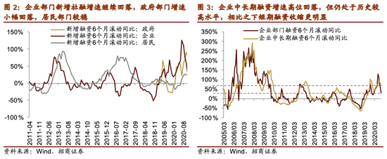 从不同部门来看,企业部门新增社融增速继续明显回落,但企业融资结构仍较好,中长期贷款保持了较高增长;政府部门融资增速开始回落;居民部门增速相对稳定。