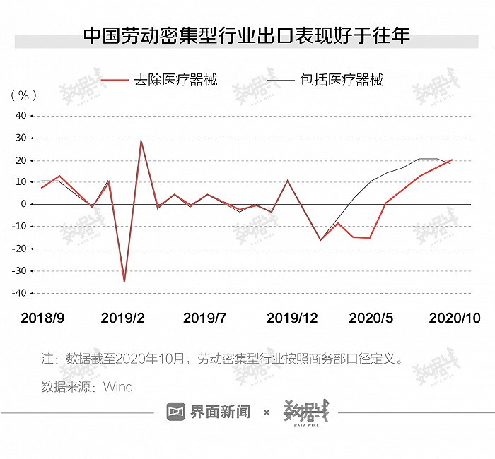 由于疫情控制良好,中国制造业复苏已经取得“先机”。疫情期间,中国外贸订单量持续增加,劳动密集型产品的出口在下半年的表现好于往年。如果中低收入国家2021年接种速度较慢,部分订单需求仍会留在中国,可继续支撑中国劳动密集型行业出口,拉动中国经济增长。同时,随着高收入国家疫情得到控制,中国的国际贸易也将得到进一步发展。