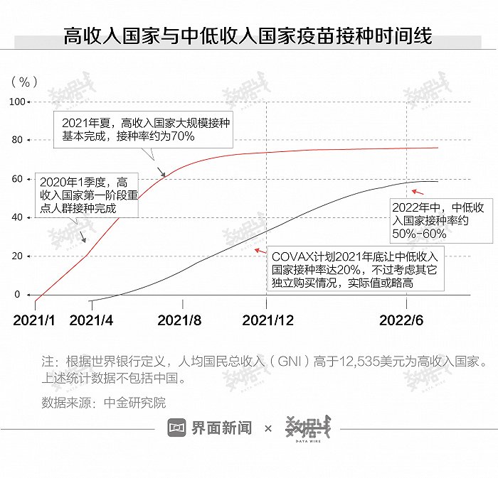 疫苗将如何影响全球经济?尽管进入到投产使用阶段的疫苗逐渐增加,但由于各国在疫苗获取、运输和注射等环节存在差距,其接种过程也难以同步。据中金研究院预计,高收入国家从2021年初将快速推进疫苗大范围接种,一季度即可完成高危人群的接种,到明年夏天基本完成接种任务。但中低收入国家,如南亚和拉美等国家的接种进程可能落后于高收入国家3至4个季度。