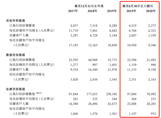 公开资料显示,2020年上半年,疫情的爆发导致客户光顾医美机构的意愿减少,普通消费者在医美服务中的总体消费情绪也有所降低。这一点在瑞丽医美的活跃客户数量及客户平均开支的数据上得到了证实。