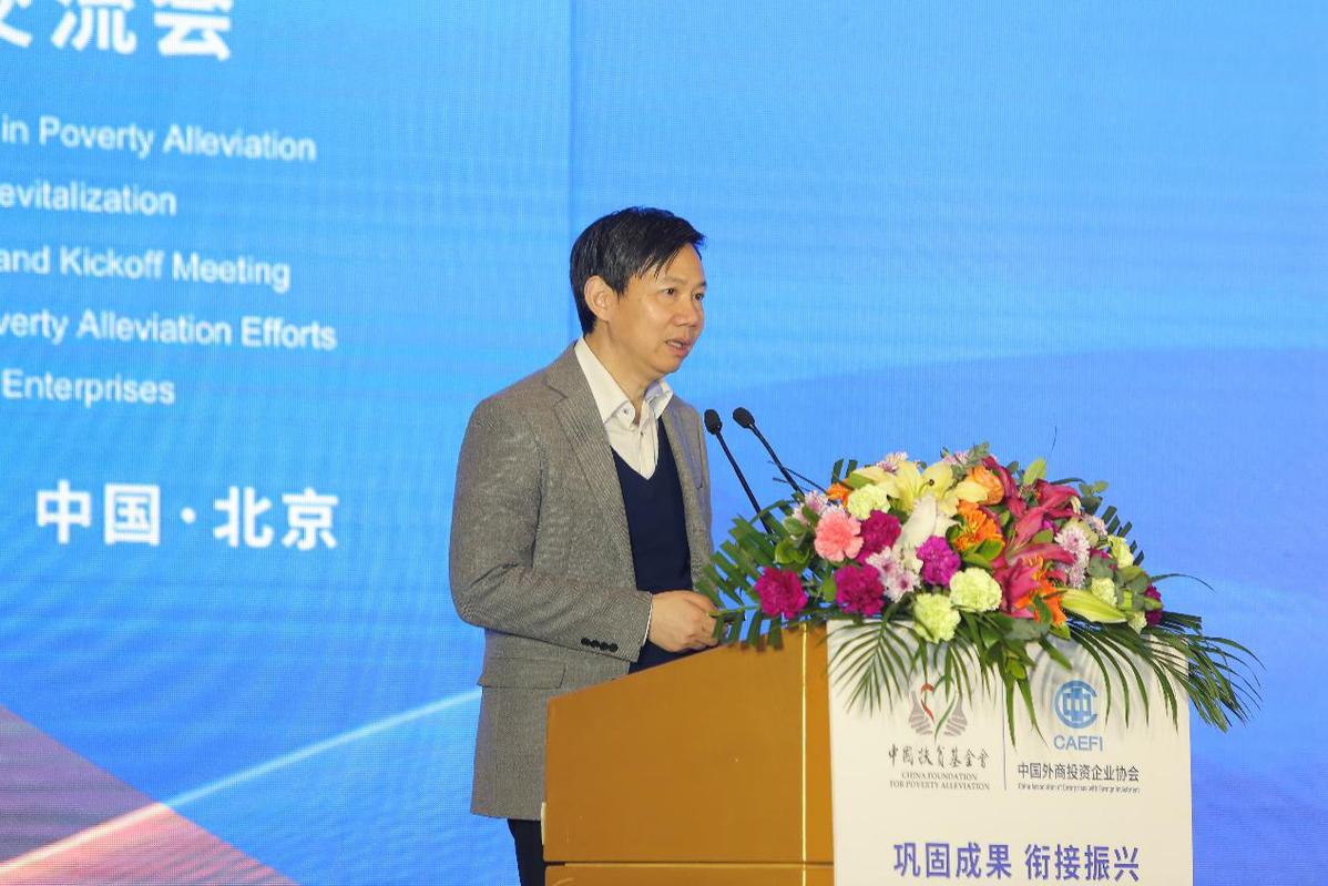 主办方中国扶贫基金会理事长郑文凯表示:“一年来外企扶贫工作围绕脱贫攻坚大局,内容丰富、案例生动,充分体现了外企强烈的社会责任感,实现了我们搭建平台的初衷,也得到了各部门的认可和社会各界一致好评。今年是中国重要的历史节点年份,又由于疫情突发、汛情叠加、世界多变的复杂情况,我们共同经历了极不平凡的一年。作为中国改革开放的重要参与者和见证者,外资企业功不可没。中国扶贫基金会在这方面深有感触和切身体会。据我们初步统计,在2015年至2019年五年间,就有81家外资企业通过我会捐赠扶贫款物,达2亿元,占总捐赠收入的15%。这其中包括在座的中国三星、苹果、星巴克、VISA公司、高通公司等,在产业扶贫领域开展了百美村宿、善品公社等项目;沃尔玛、百胜集团、如新在健康扶贫领域开展的捐一元、爱加餐等项目;耐克、ABB集团、亚马逊在教育扶贫领域实施的爱心包裹、新长城大学生资助等项目,还有诸多与我会合作的外企在救灾扶贫、公益伙伴合作、国际扶贫和扶贫倡导等领域开展精准扶贫,惠及100多个县近70万人次。外企扶贫创造了很多可复制可推广的宝贵经验。我们会同合作伙伴继续巩固拓展脱贫攻坚成果,实施乡村建设行动,加快推进农业农村现代化。在这一新的历史进程中,外企扶贫行动将大有可为。”