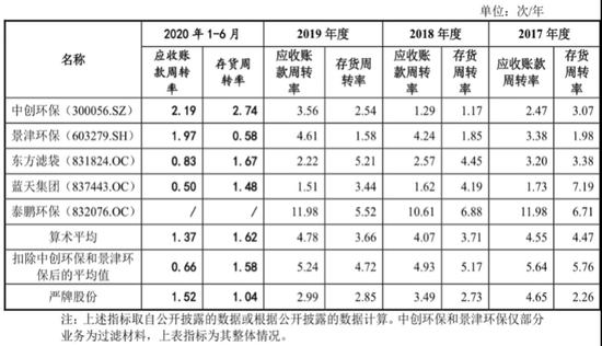 此外,《投资时报》研究员发现,严牌股份的存货余额较高且逐年递增。报告期各期末,该公司的存货账面价值分别为0.79亿元、0.93亿元和1.21亿元和1.76亿元,仅2020年上半年存货余额较2017年整年数值翻了一倍。其中,库存商品占比较高,分别为51.84%、54.37%、59.73%和55.33%,公司存货周转率低于同行业公司水平。