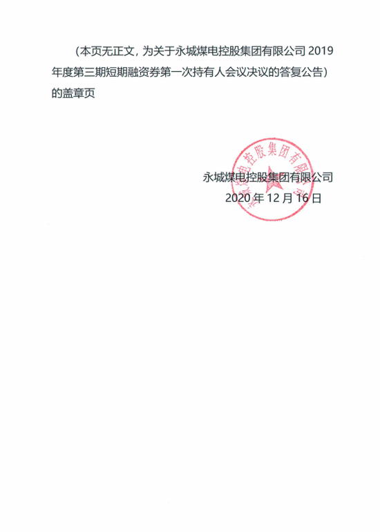"19永煤CP003"持有人会议通过先行兑付50% 剩余本金展期等议案