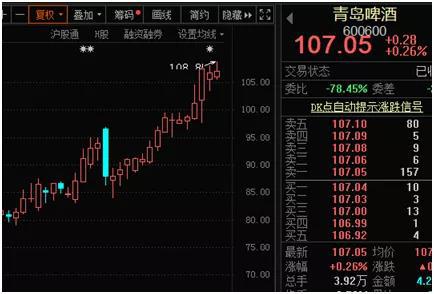今日,喝酒行情继续,截至收盘,包括金枫酒业、惠泉啤酒、金种子酒、兰州黄河等多股集体涨停。像二线白酒老白干酒,本月涨幅达56%,近两个涨幅近140%。啤酒龙头青岛啤酒近期更是创出K线连续15连阳的纪录,股价不断创出新高。
