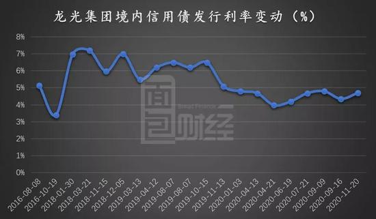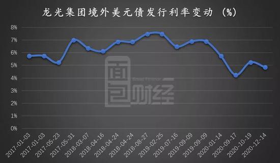 2020年1-11月,龙光集团发行的境内信用债和境外美元债平均票面利率为4.53%和5.03%,相比2019年回落1.57和1.93个百分点;平均发行期限分别为3.38年和5年,其中境外美元债平均发行期限比2019年拉长0.75年,境内信用债平均发行期限与2019年基本持平。综合来看,2020年以来,龙光集团境内信用债、境外美元债发行利率回落、同时久期拉长。