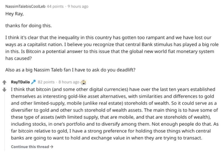 桥水基金的创始人达里奥近日公开表示,过去十年来,比特币(以及其他一些数字货币)已经发展成为一种有趣的、类黄金另类资产,其与黄金(以及其他供应有限,且区分于不动产的移动财富)有相似的地方,也有不同之处。因此,可以将其当作黄金和其他移动财富之外的另一种多样化选择。