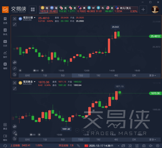 同时,金银油汇都在涨,现货黄金上破1870美元关口,现货白银涨逾1%。