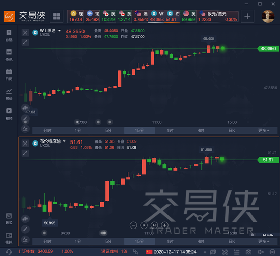 美、布两油也分别上破48和51美元关口,为4月油价暴跌以来首次。本周至今美、布两油已连涨四天。