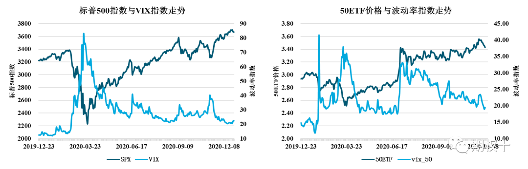 图2:波动率指数与对应标的走势对比(2019.12.23~2020.12.11)