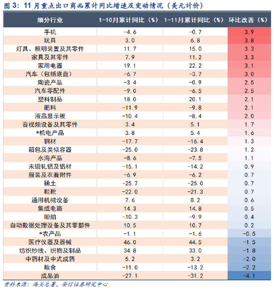 1.拆解11月出口表现:疫情受益板块为主要拉动力
