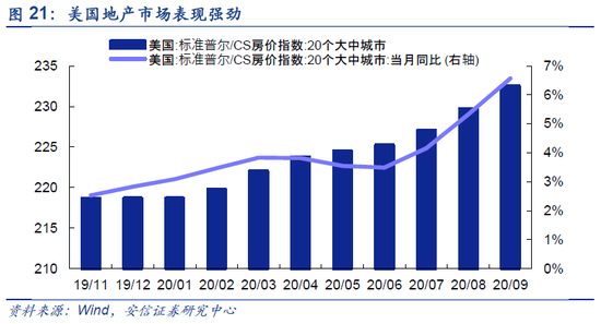 家电、家居等地产后周期板块出口将持续受益于欧美房市表现。疫情期间,美联储出台了一系列高强度的宽松货币政策,美元流动性泛滥将成中长期背景,推动资产价格上升,房市一片繁荣。家电、家居及家电等地产后周期板块作为我国的强势出口行业,在流动性泛滥背景下,出口表现预计将在中长期内持续受欧美强劲地产需求所拉动。