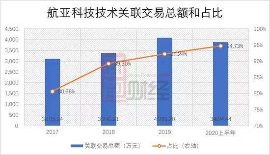 2020年上半年,航亚科技实现技术开发收入4111.20万元,基本追平前几年的全年水平。但是,公司技术开发中有94.73%都来源于关联交易。