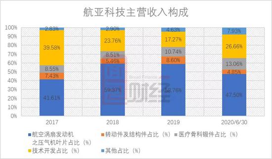航亚科技技术开发业务最大客户是关联方中国航空发动机集团有限公司(下称“航发集团”)下属科研院所工厂。2017-2019年,航发集团下属科研院所工厂为航亚科技分别贡献了3105.94万元、3390.82万元和4088.20万元收入,占技术开发收入的比例分别为80.66%、89.3%和92.24%。2020年上半年贡献3894.44万元,占比进一步提升至94.73%。