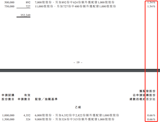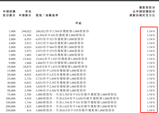 3)甲组尾中签比乙组头多,港交所历史罕见。更让市场疑问的是,公司的甲组尾中签了11手,而乙组头只有6手,甲乙组实现倒挂,这在港股新股市场中几乎很难遇到。