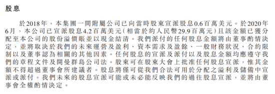 公司上市前突击分红,2018年分红60万美元,但2020年中期,公司派发股息高达420万美元。