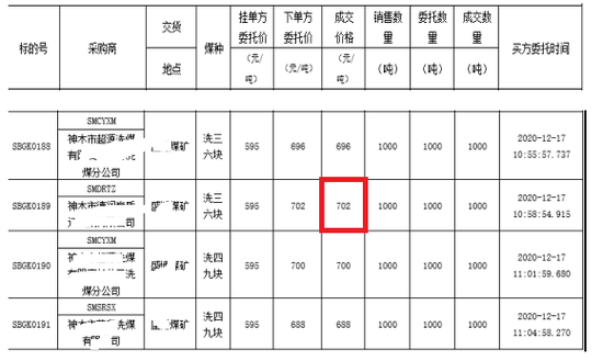 昨天,产地一煤矿竞价,洗三六块起拍价595元/吨,成交价702元/吨,涨幅107元/吨。