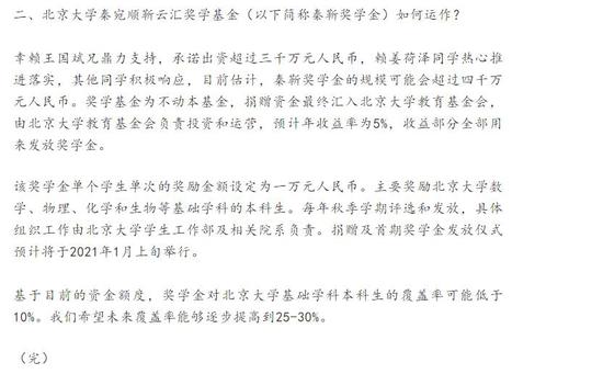 关于北京大学秦宛顺靳云汇奖学基金的问答