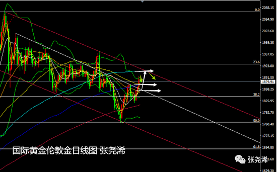 走势上,金价自亚市早盘开于1864.86美元/盎司后,上午盘处于窄幅震荡中,并录得日内低点1861.98美元,至此之后开始震荡走高,延续至欧盘虽有超10美金回撤,但在美盘开盘后,仍再度延续上行,并加大反弹力度,一度突破1890美元录得日内高点1895.80美元,最终行情产生回撤,收于1885.32美元,日振幅33.82美元,收涨20.46美元,涨幅1.1%。