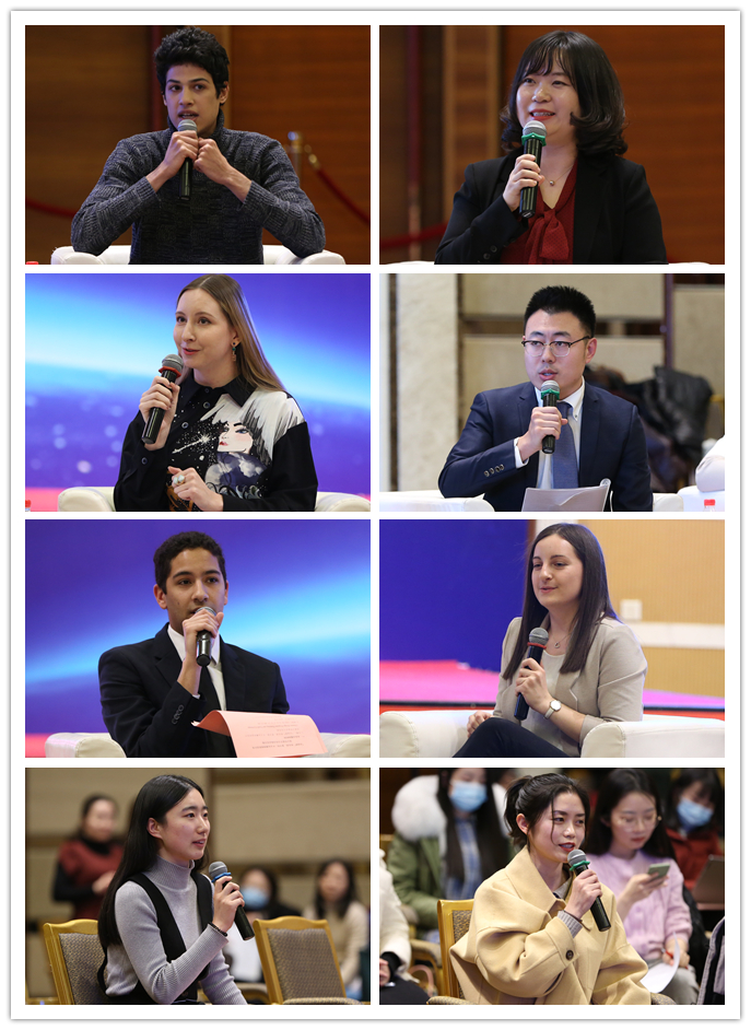 中外语言交流合作中心副主任赵国成,北京大学对外汉语教育学院院长赵杨,全国政协委员、中央音乐学院音乐孔子学院办公室•中外音乐文化交流与体验基地主任刘月宁,北京语言大学速成学院院长苏英霞,中国传媒大学汉语国际教育中心副主任乐琦,湖南大众传媒学院国际处处长王涛,著名相声表演家、“汉语桥”青年导师应宁,中央电视台主持人、“汉语桥”青年导师韩佳等出席会议。中央电视台主持人、“汉语桥”青年导师路伦一主持本场会议。此外,“汉语桥”历届获奖选手刘正曦、大伟、茹丝等以及北京大学、北京语言大学、中国传媒大学等高校中国大学生代表参加了会议。第十九届“汉语桥”世界大学生中文比赛总冠军戴庐可,第十七届“汉语桥”世界大学生中文比赛总冠军鲁斯兰,第十一届“汉语桥”世界中学生中文比赛第二名、哈佛大学学生洪明伟,第十三届汉语桥世界中学生中文比赛全球总冠军甜甜,第十二届汉语桥世界中学生中文比赛全球总冠军郑彦柯等在线参加了本次会议。