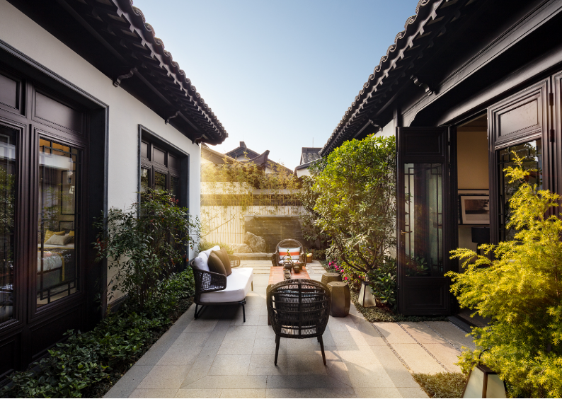 云上目前已完成第一、二期的开发,将江南苏派院落建筑风格的院居产品整体复刻到了西南地区。建面约95-190平米的平层院落,户户独门独院,且附赠一定面积的菜地,可供种植以深井水浇灌的有机蔬菜和水果。