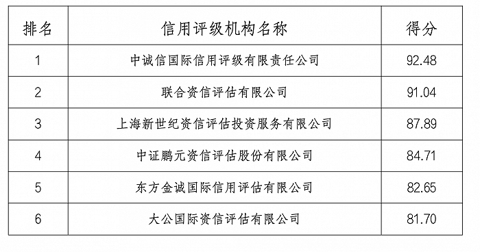 另外,根据此次公布的信用评级机构信用评价结果,中诚信国际连续5年夺得第一,联合资信评估有限公司、上海新世纪资信评估投资服务有限公司分列二、三位,
