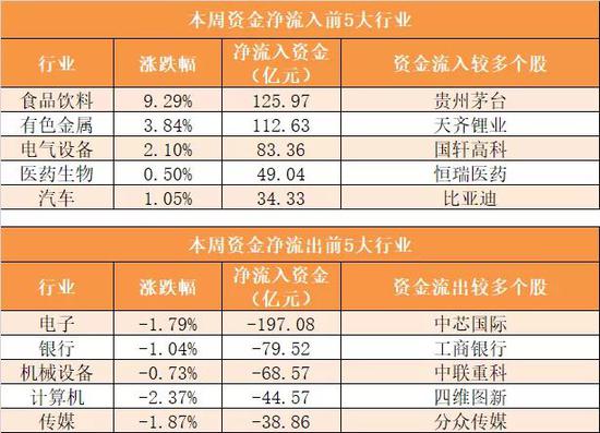 28个申万一级行业中,本周8个行业实现资金净流入,其中食品饮料行业净流入125.97亿元居首。
