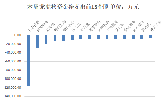 个股龙虎榜净卖出金额居前的15只个股分别为:
