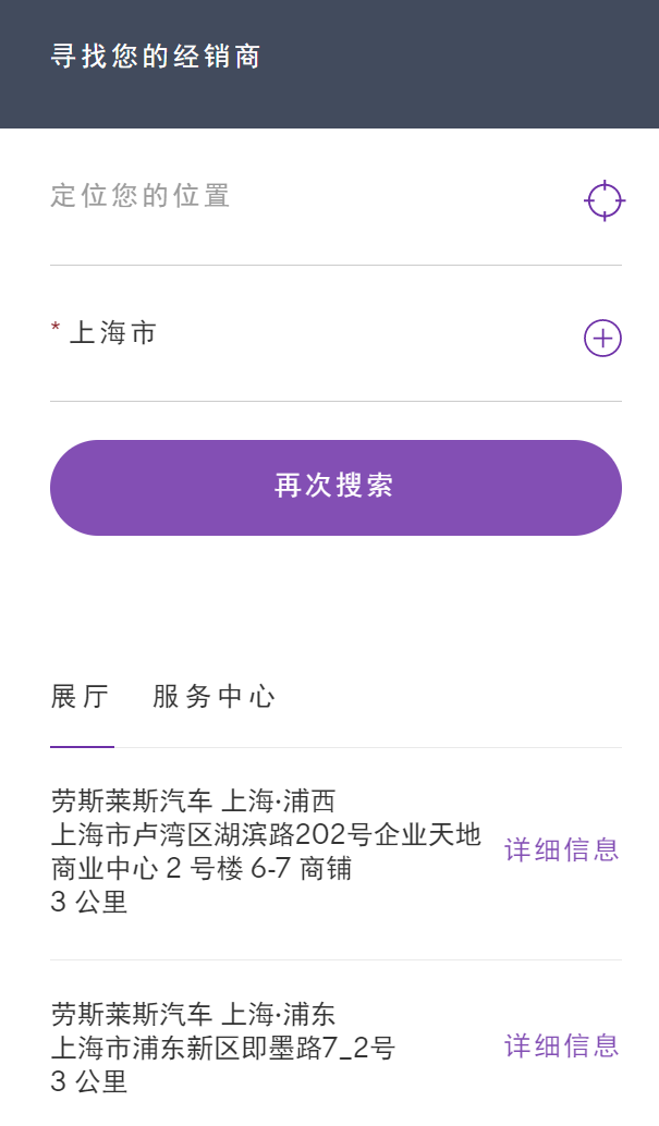 劳斯莱斯官网信息显示,其在上海的经销商仅两家,分别位于卢湾区和浦东新区。