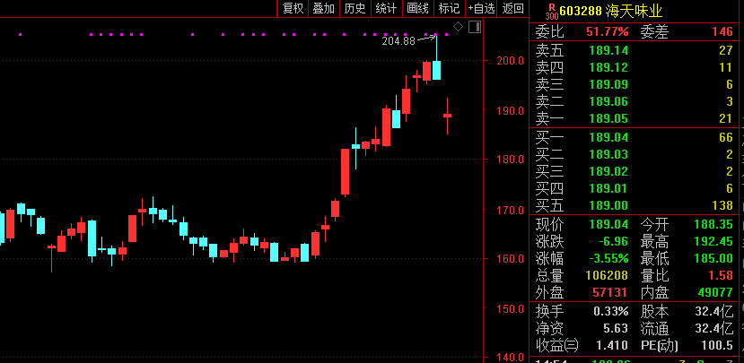 受消息刺激,12月16日,海天味业盘中拉升一度涨至204.88元新高,市值超6600亿元。
