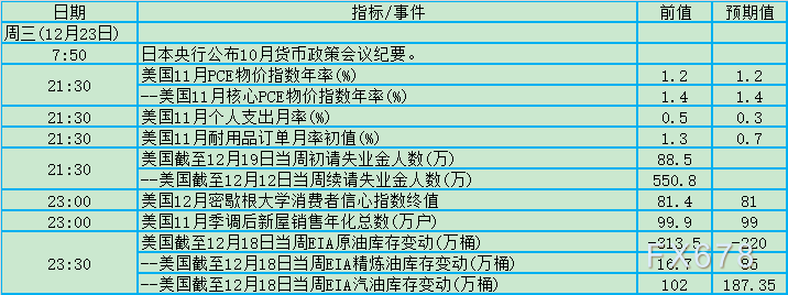 周三(12月23日)关键词:美国PCE、美国耐用品订单、初请、EIA