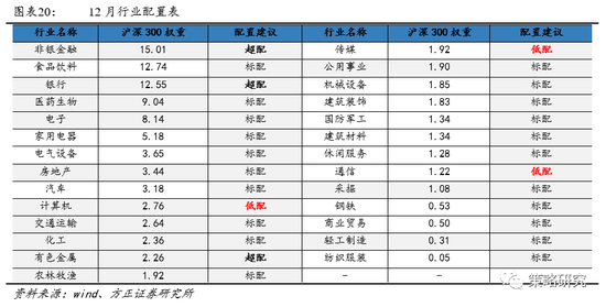 2.2 12月行业配置:首选保险、银行、有色金属