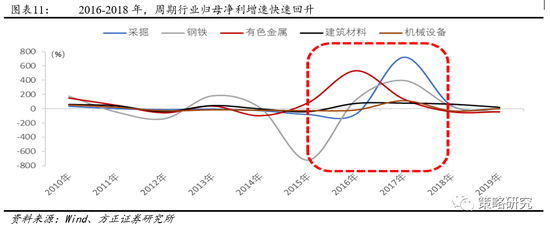 2016-2018年的化解过剩产能政策,重塑黑色产业链,推动工业企业盈利改善。2015年12月,中央经济工作会议上首次提出了“三去一降一补”,即去产能、去库存、去杠杆、降成本、补短板五大任务,是习总书记根据供给侧结构性改革提出的五大任务。其中,主要涉及到产能过剩、楼市库存大、债务高企这三个方面。由于2008年金融危机后我国实施的“四万亿”大规模刺激计划,形成了大量基建投资需求,刺激了上游产业的快速扩张,导致钢铁、水泥、电解铝等行业产能严重过剩,产业供需格局不断恶化。2016-2018年,我国连续三年分别淘汰6500万吨、5000万吨及3000万吨钢铁产能,共压减1.45亿吨表内产能,2017年上半年淘汰了1.4亿吨地条钢,去产能总量已经超过2.85亿吨。行业供需结构得到优化,行业利润也不断改善,2015年年底,西本钢材指数跌至1900元/吨,创阶段历史最低点。1年之后,该指数回升至3500元/吨左右。2017年底,甚至一度站上5000元/吨高点。随着供给侧改革的实施,中上游行业的供需格局得到显著改善,行业集中度大幅提高,企业经营效率明显明好转。在业绩端支撑下,2016-2018年,周期行业股价表现整体显著走强,具备明显超额受益。
