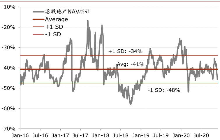 图表: 港股地产公司历史NAV折让水平和动态市盈率