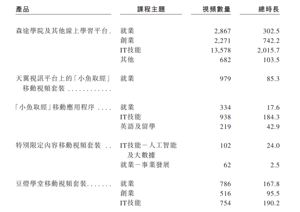 但从视频数量与总时长看,特别限定内容移动视频套装的内容非常少。截至2020年6月30日,其教育内容资料库包含24767个线上视频,总时长约4201个小时。而特别限定内容移动视频套装只有不到200个视频,总时长只有26.5个小时。