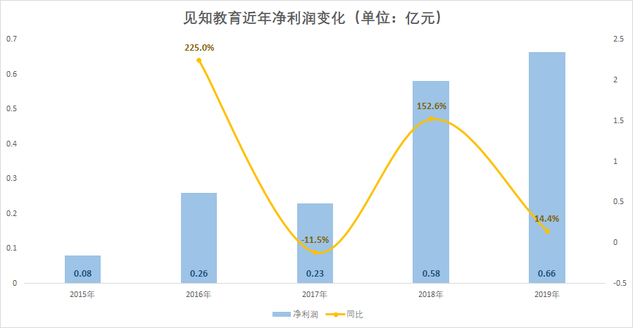 盈利能力的下滑,带来了盈利水平的不稳定。2017-2019年,见知教育实现净利润2316.1万元、5809万元、6643.8万元;今年上半年则实现净利润4591万元。最近五年,见知教育的净利润增速波动相当大。