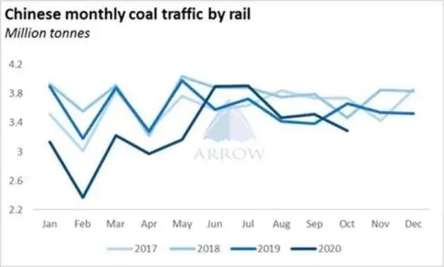而在东南沿海的港口,上个月底有82艘澳大利亚船舶滞留,船上装载着的880万煤炭被拒之门外。